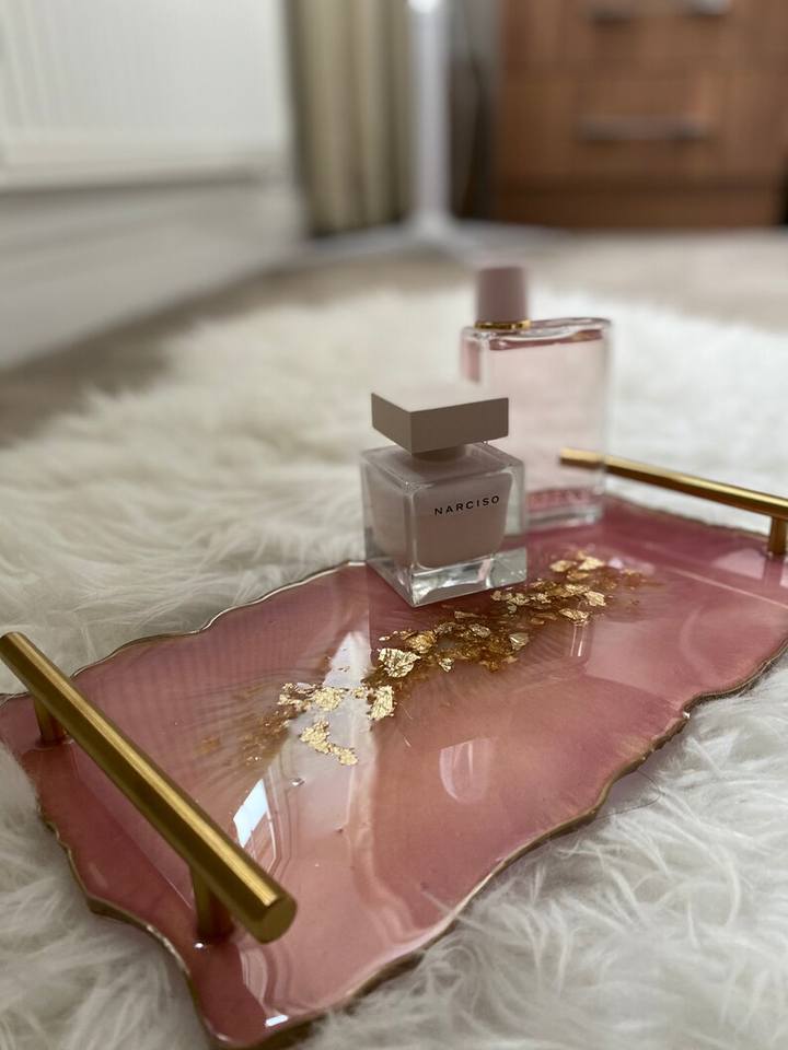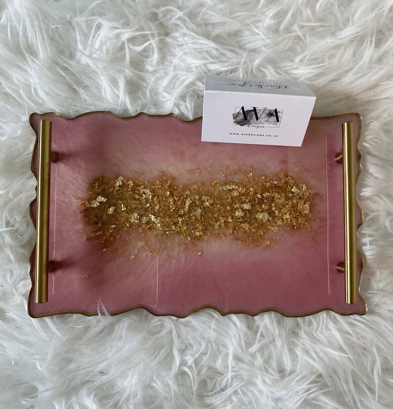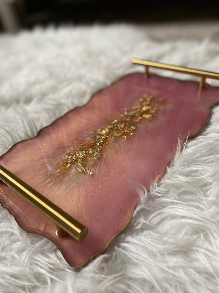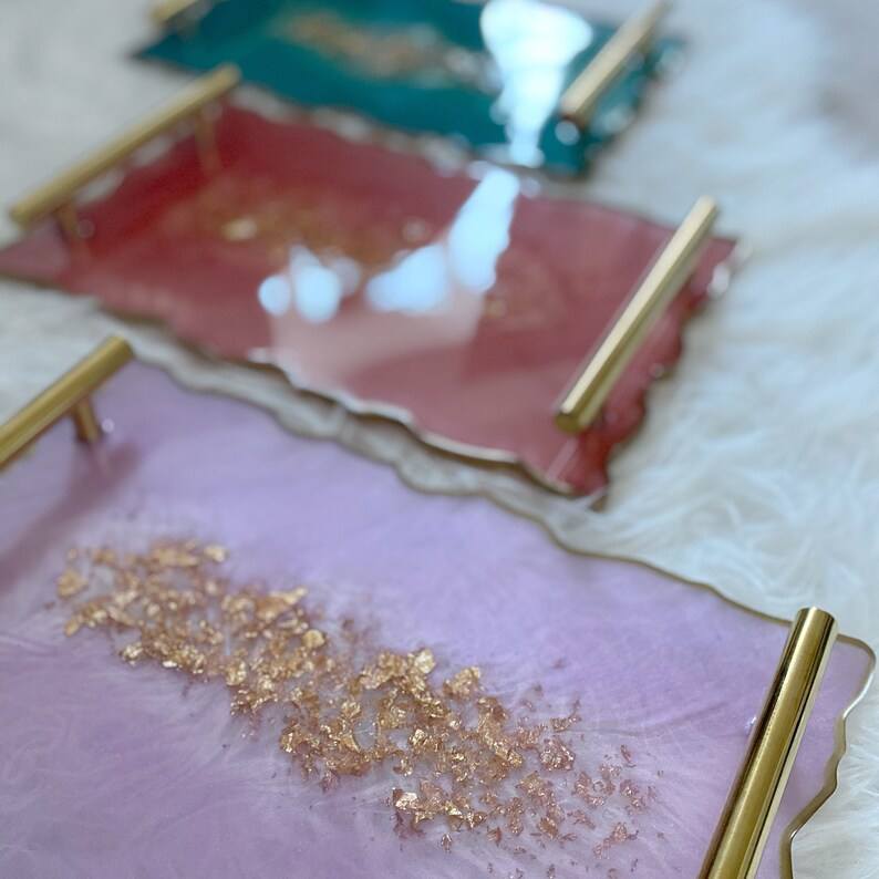 ชุดถาดเสิร์ฟเรซิ่นลายจีโอดสีพาสเทล งานฝีมือเหนือกาลเวลา ขนาดสั่งทำพิเศษ พร้อมถาดตกแต่งอีพ็อกซี่ทำมือประดับทองคำเปลว และหูจับสีทอง