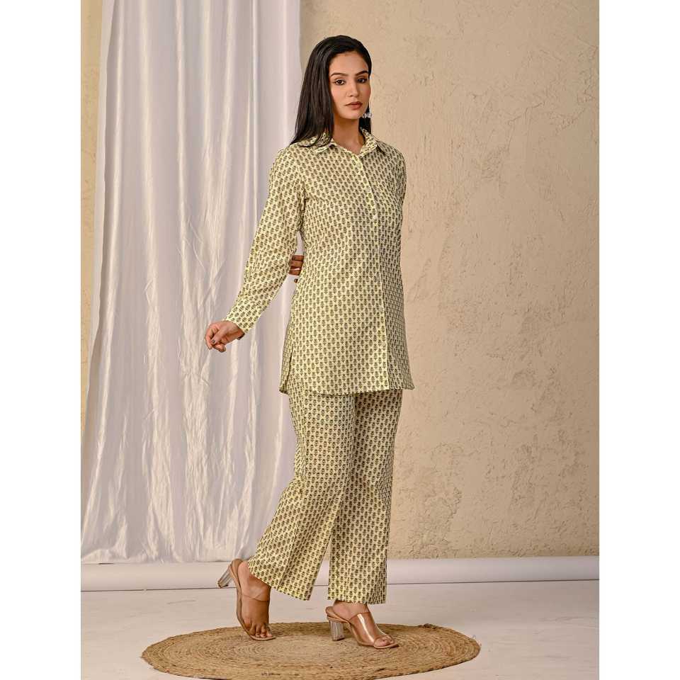 ชุดเซ็ตผ้าฝ้ายปักลายบาริกบุตติสีเขียวพาสเทล ทรงลำลอง กระดุมหน้า มีไซส์ XXL XL L XL 3XL 4XL 5XL 6XL