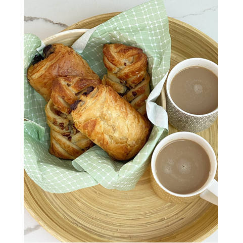 ถาดไม้ไผ่เคลือบเงากลมพาสเทล/ถาดเสิร์ฟไม้ไผ่พร้อมที่จับ