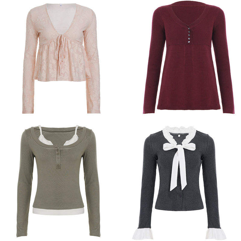 เสื้อยืดแขนยาวถักแบบแพทช์เวิร์ค ระบายอากาศได้ดี เป็นมิตรกับสิ่งแวดล้อม แฟชั่นฤดูร้อนสำหรับผู้หญิง คอวี เซ็กซี่ ทรงหลวม สวมใส่สบาย เหมาะสำหรับใส่ทำงานหรือใส่ลำลอง