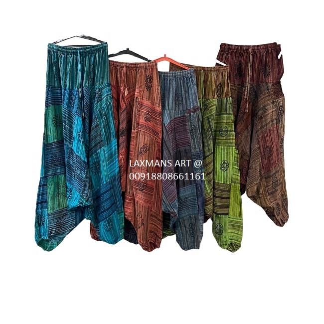 กางเกงฮาเร็มผ้าฝ้ายเย็บปะติดปะต่อกัน ชุดนอนฮาเร็ม ชุดนอนผ้าฝ้ายเย็บปะติดปะต่อกัน ชุดนอนผ้าฝ้ายเนปาล ชุดนอนเย็บปะติดปะต่อกัน กางเกงโบฮีเมียน