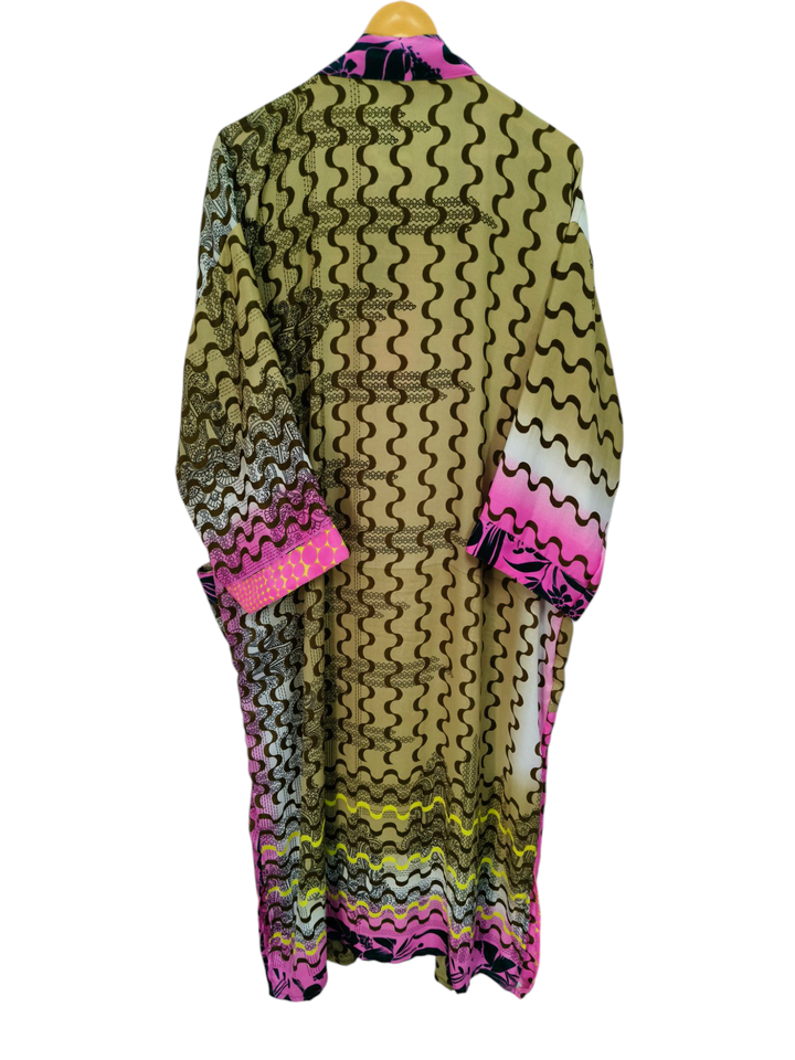 ชุดกิโมโนเย็บปะติดปะต่อกันชุดคลุมบิกินี่เสื้อคลุมยาวสำหรับใส่กลางคืนทำด้วยมือสไตล์วินเทจผ้าไหมส่าหรี