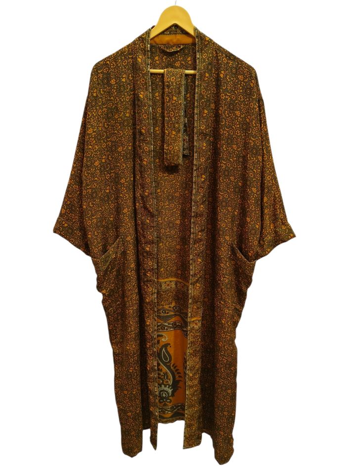 ชุดกิโมโนเย็บปะติดปะต่อกันชุดคลุมบิกินี่เสื้อคลุมยาวสำหรับใส่กลางคืนทำด้วยมือสไตล์วินเทจผ้าไหมส่าหรี