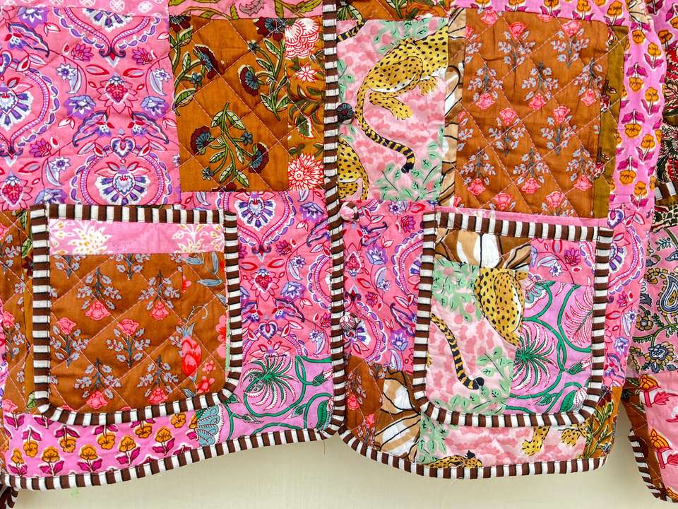 แจ็คเก็ตผ้าฝ้ายเย็บปะติดเสื้อโค้ทโบฮีเมียนสำหรับผู้หญิง, เสื้อคลุมสไตล์โบฮีเมียนทรงแบบกลับด้านได้สำหรับฤดูหนาวพิมพ์ลาย