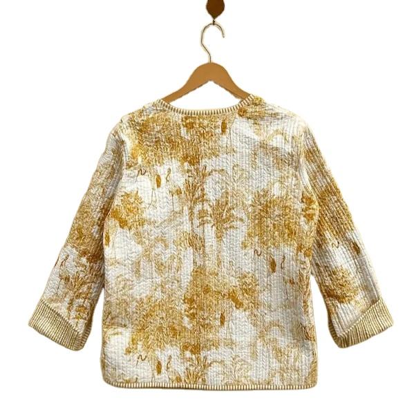 เสื้อแจ็กเก็ตบุผ้าคอตตอนลายดอกไม้สไตล์โบฮีเมียนของผู้หญิงเสื้อโค้ทกลับมาพร้อมดีไซน์ถักสำหรับฤดูใบไม้ร่วงฤดูหนาว