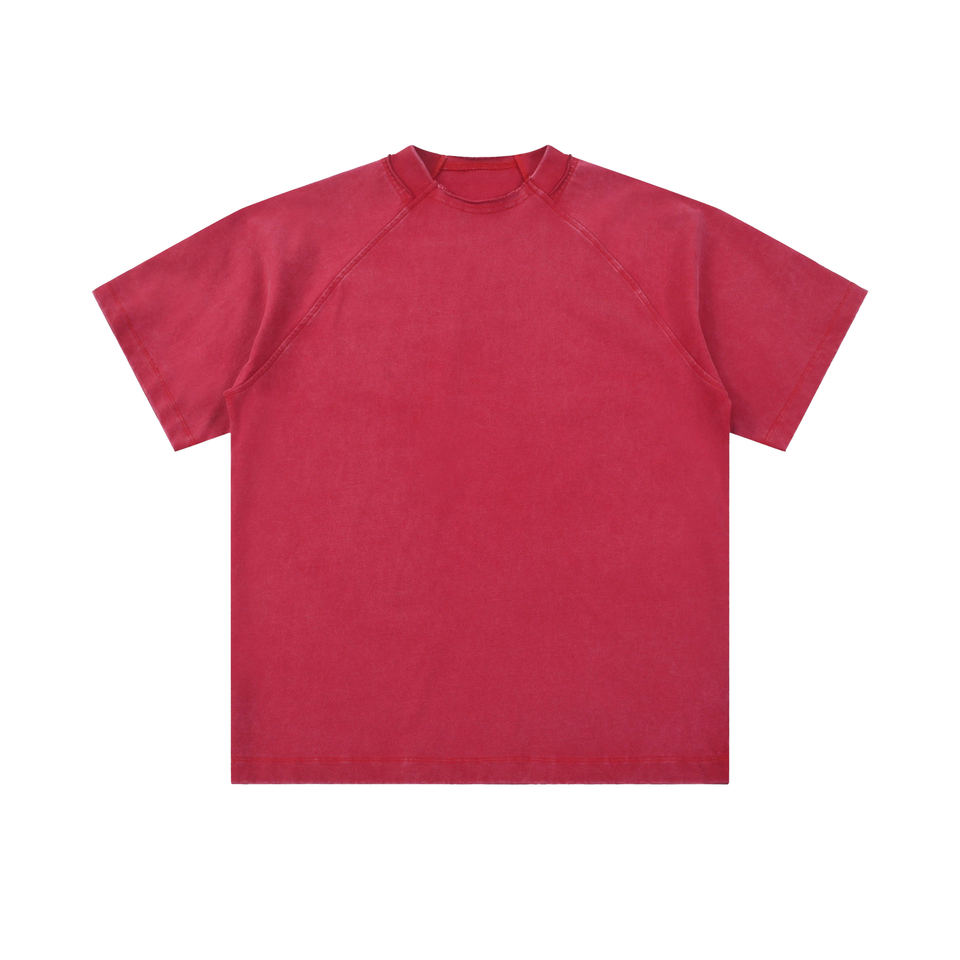 เสื้อยืดวินเทจผ้าฝ้ายแท้ปะติดแขนสั้นฤดูร้อน260g ผ้าฟอก
