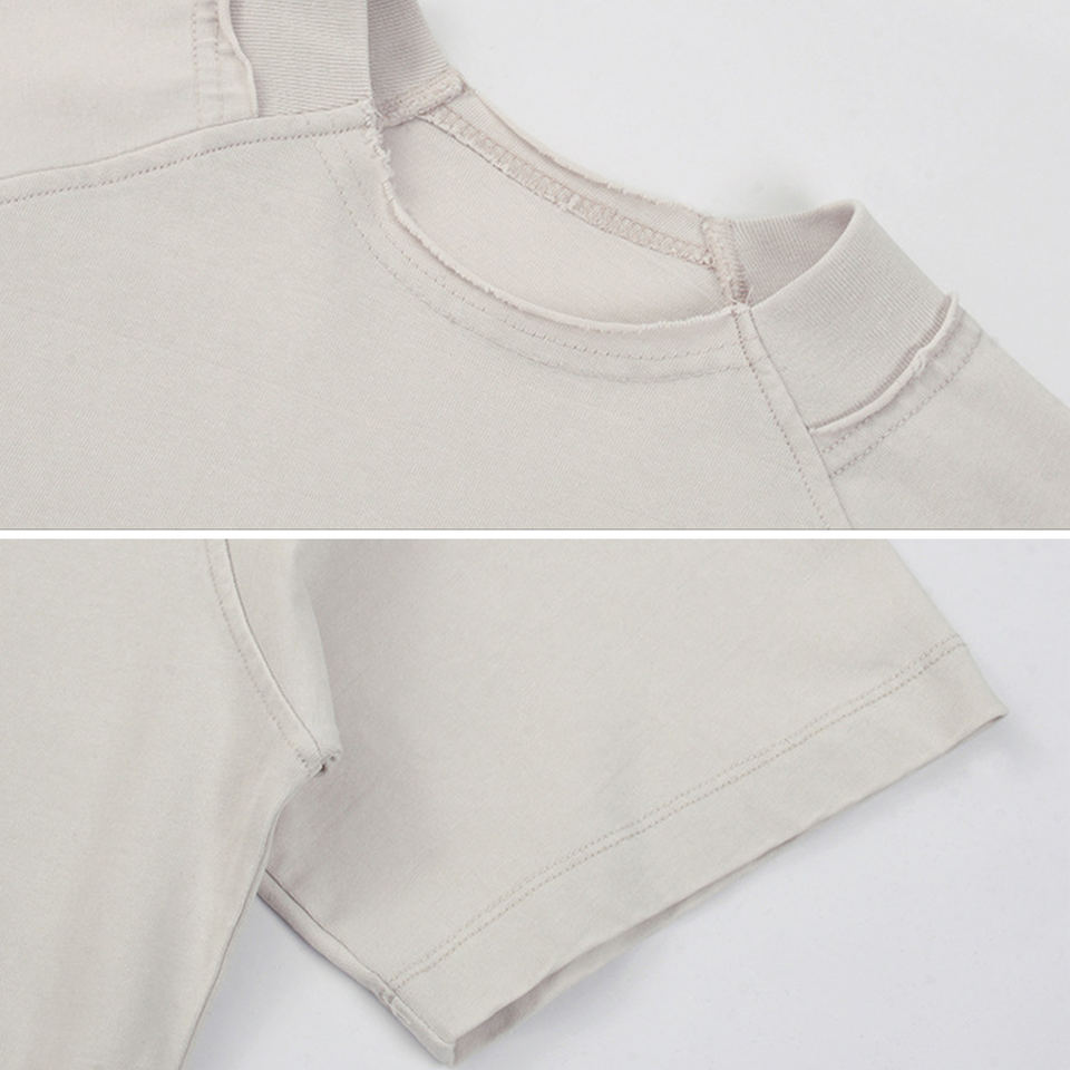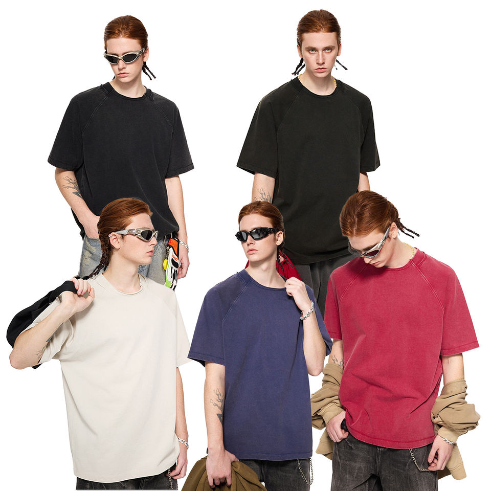 เสื้อยืดแขนสั้นเย็บปะติดปะต่อกัน & ซักเสื้อผ้าลำลองผ้าฝ้ายแท้260ก. สำหรับฤดูร้อน