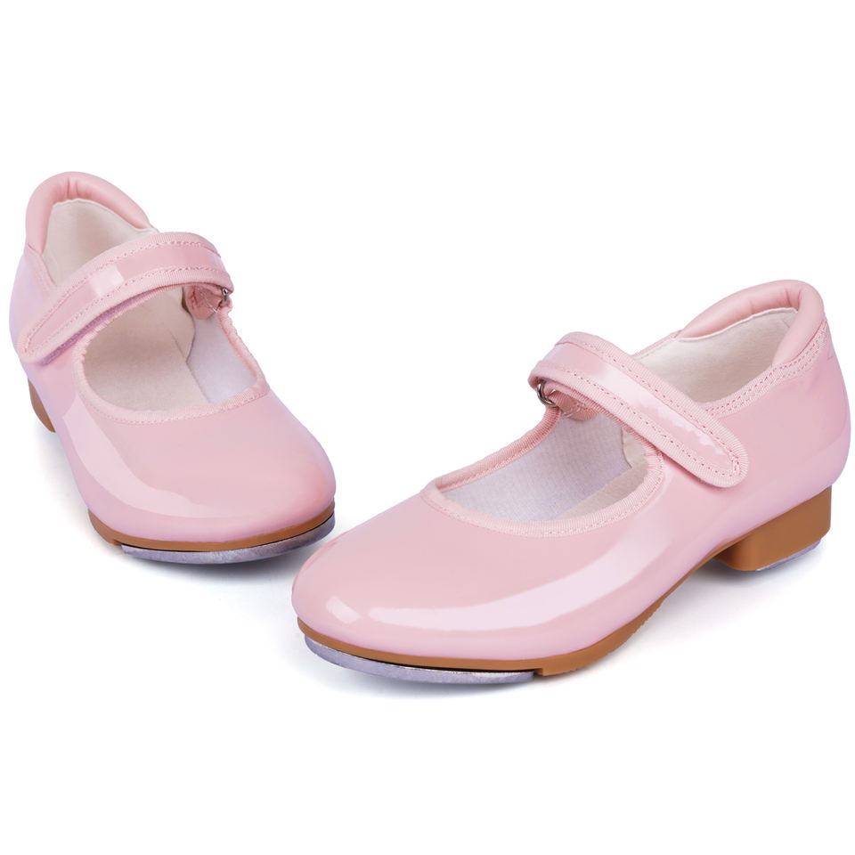 รองเท้าเต้นแท็ปหนังสิทธิบัตรมีสายรัดง่ายสำหรับเด็กเล็กเด็กเล็กเด็กโต