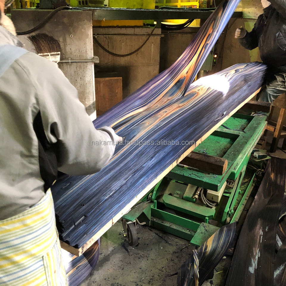 แผ่นไม้วีเนียร์ไม้ซีดาร์ญี่ปุ่นสีน้ำเงินย้อมสีด้วยแรงดันสูงที่ได้รับสิทธิบัตร IRODORITAI VENEER VC-01-BL เนื้อเรียบ ตัดเป็นแผ่นบาง ความยาวหลากหลาย