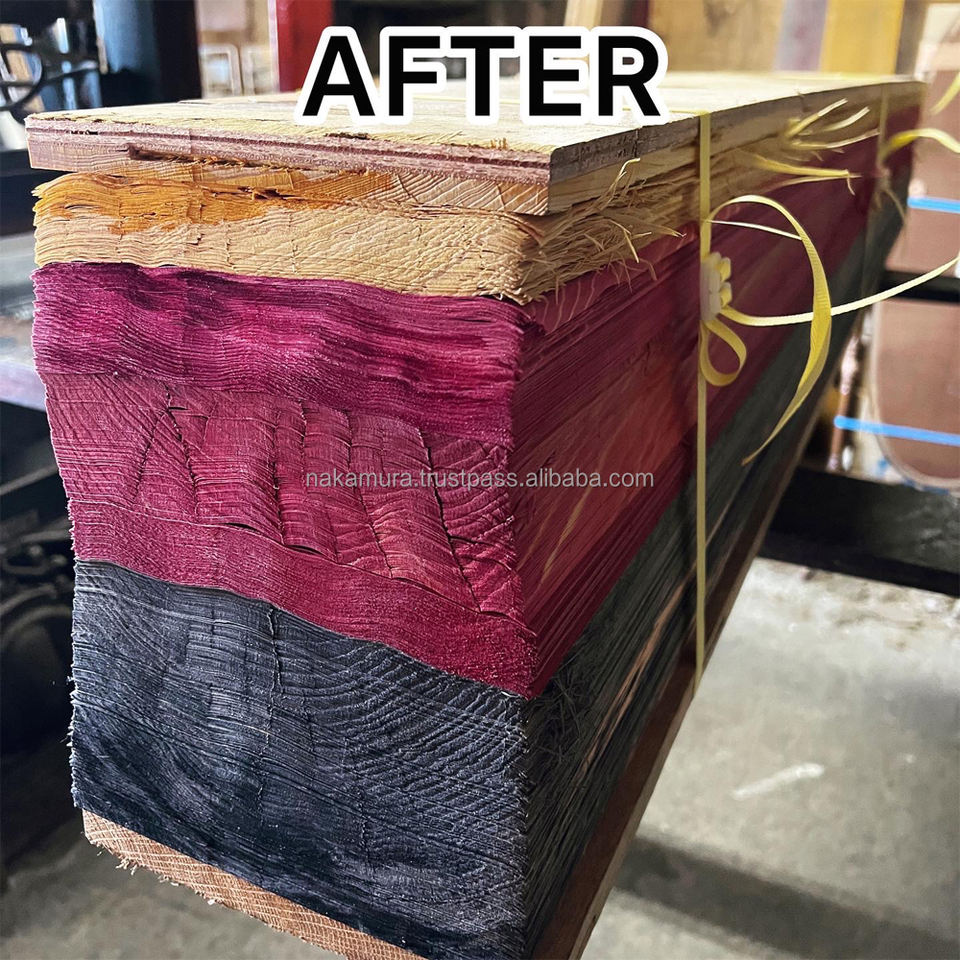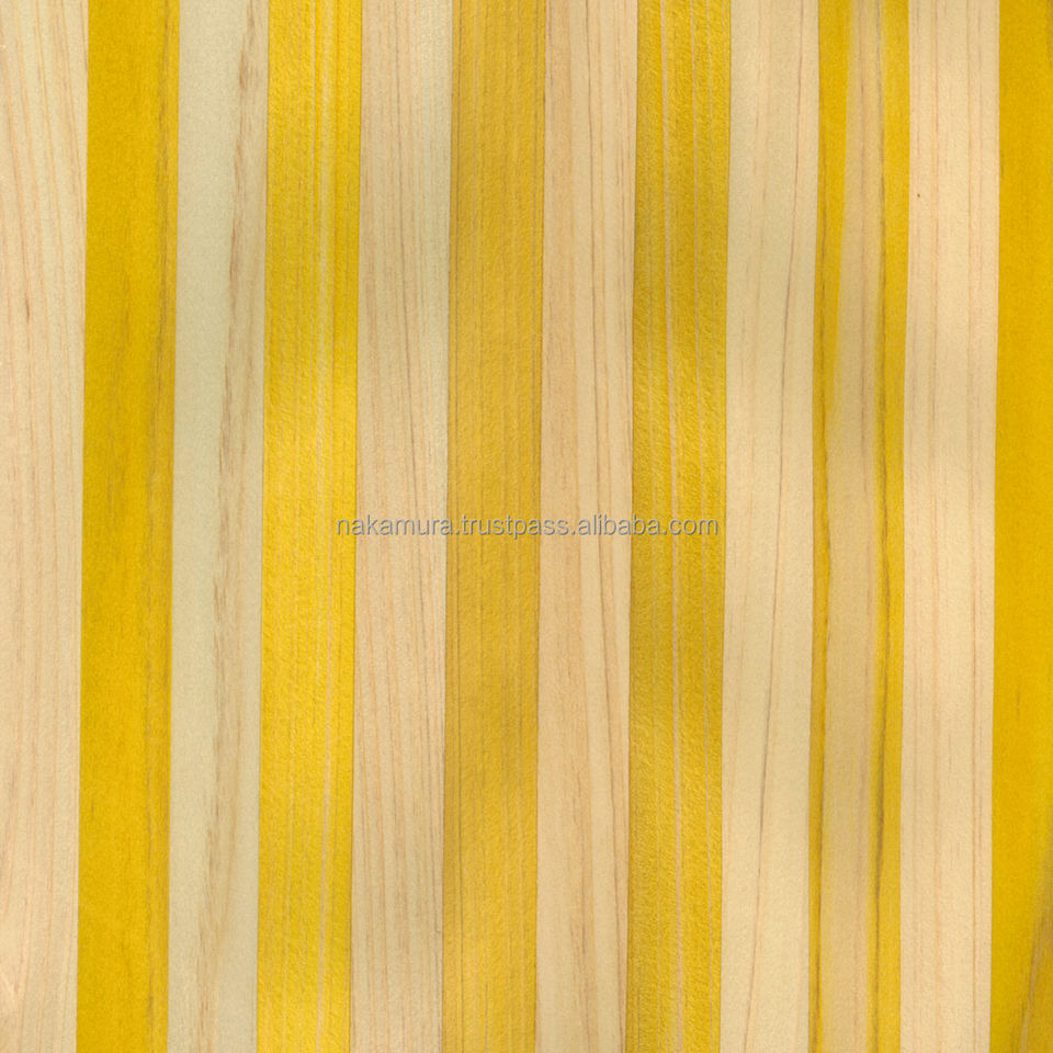 แผ่นไม้วีเนียร์ฮิโนกิญี่ปุ่นลายทางสีเหลืองย้อมสีด้วยแรงดันสูงที่ได้รับสิทธิบัตร IRODORITAI ดีไซน์ญี่ปุ่น เนื้อเรียบ ตัดเป็นแผ่น
