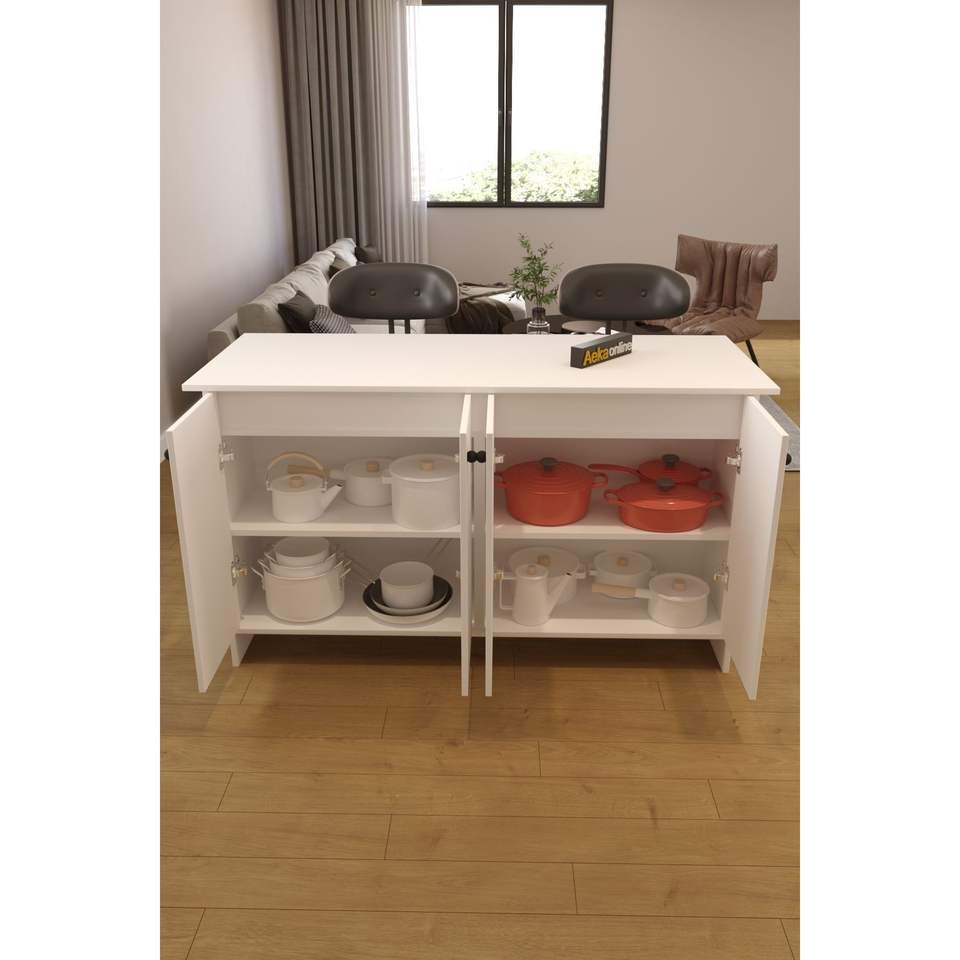 โต๊ะบาร์ครัวสีขาวทันสมัยขนาด 160 ซม. พร้อมตู้เก็บของ 4 บานอเนกประสงค์ ได้รับสิทธิบัตร AekaOnline Turkey