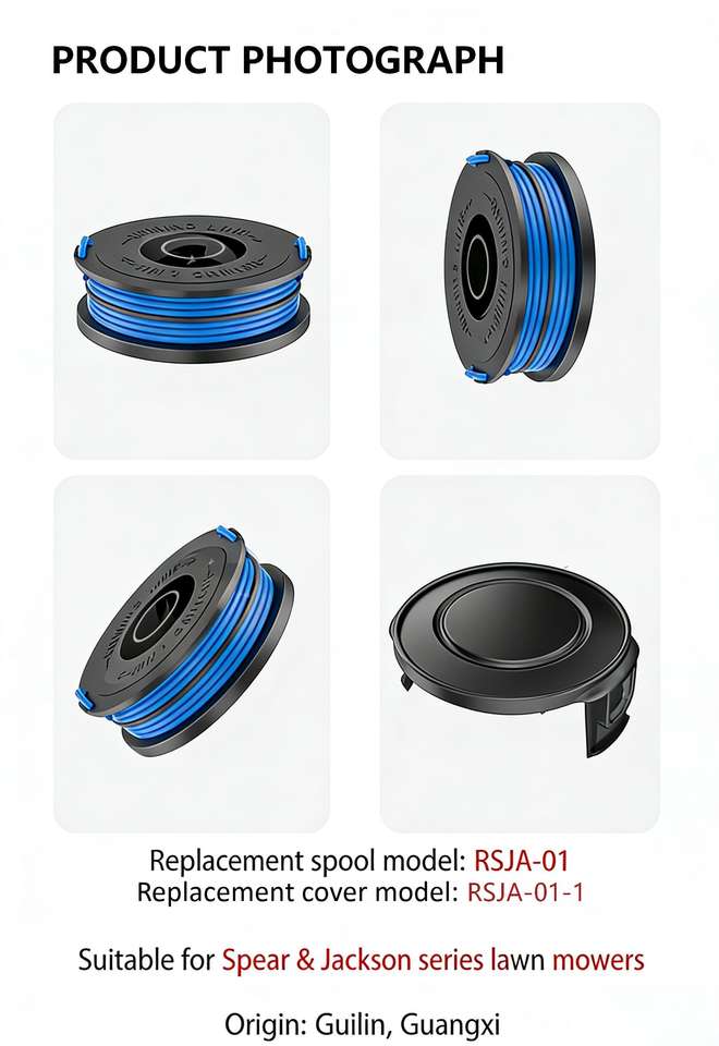 ฝาครอบแกนม้วนสายเอ็นตัดหญ้า RSJA-01 สีดำ สำหรับเครื่องตัดหญ้า Spear & Jackson รุ่น GT450/GT600/N1F-GT-280 รับประกัน 1 ปี ขนาด 82x38 มม. (ได้รับสิทธิบัตร)