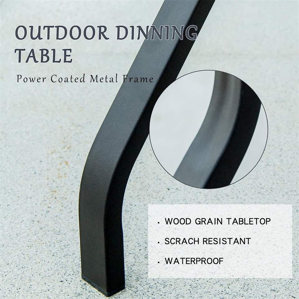 Patio Dining Table with Umbrella Hole Outdoor Metal Square Wood-Look Top for Porch Garden Balcony Backyard-1 Table