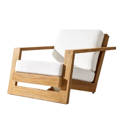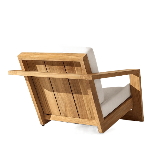 เก้าอี้เลานจ์สำหรับลานสวนกลางแจ้งที่นั่งโซฟาเดี่ยวทำจากไม้สักพร้อมเบาะสำหรับเฟอร์นิเจอร์ในโรงแรมและกระท่อม