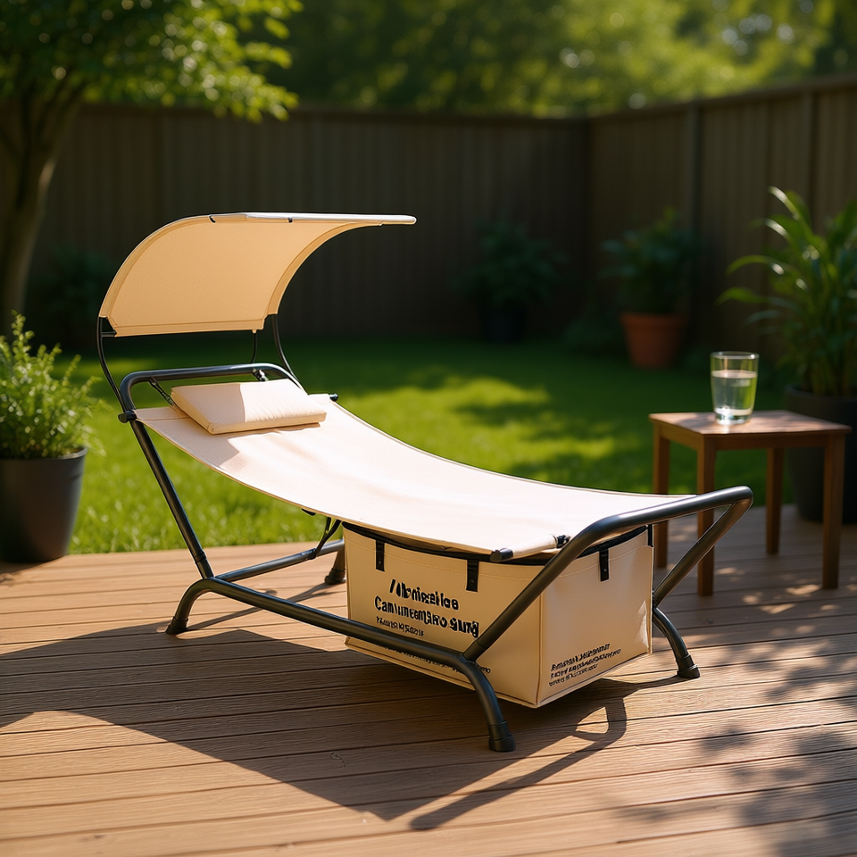 เก้าอี้อาบแดดพร้อมหลังคา ที่เก็บเบาะรองนั่ง สีเบจ เฟอร์นิเจอร์กลางแจ้ง เก้าอี้ปรับเอน ดีไซน์ทันสมัย
