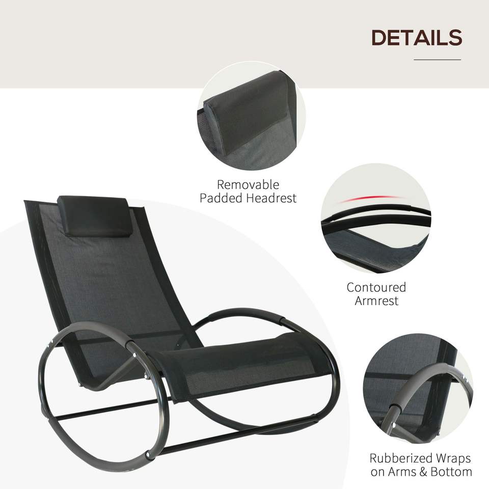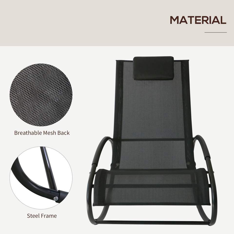 เก้าอี้โยกสำหรับลานบ้าน เก้าอี้นอนกลางแจ้งพร้อมผ้าระบายอากาศและหมอนรองศีรษะ สำหรับใช้ในสวนหลังบ้าน ห้องนั่งเล่น ระเบียง และริมสระว่ายน้ำ
