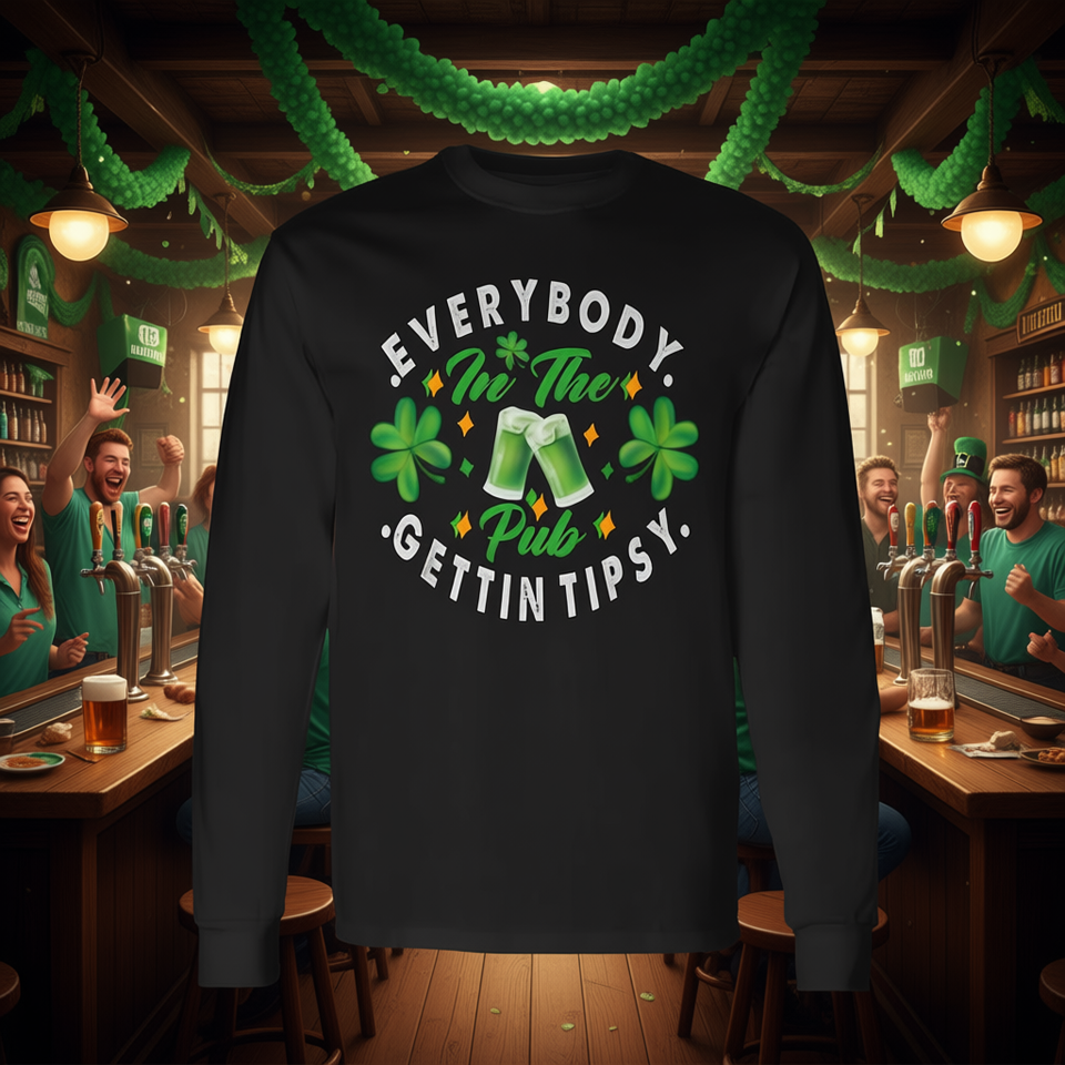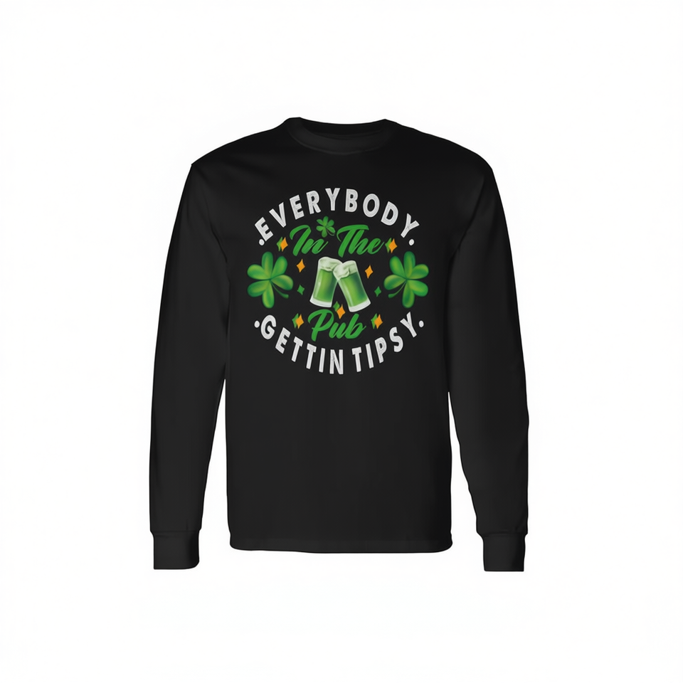 เสื้อยืดแขนยาววันเซนต์แพทริก สำหรับทุกคนในผับที่กำลังสนุกกับการดื่มสังสรรค์ สินค้าส่งเสริมการขาย
