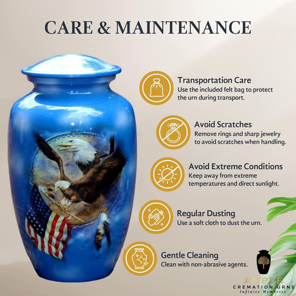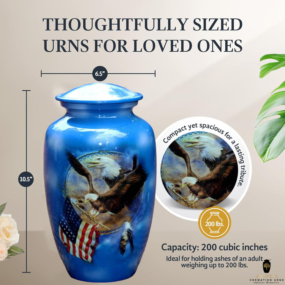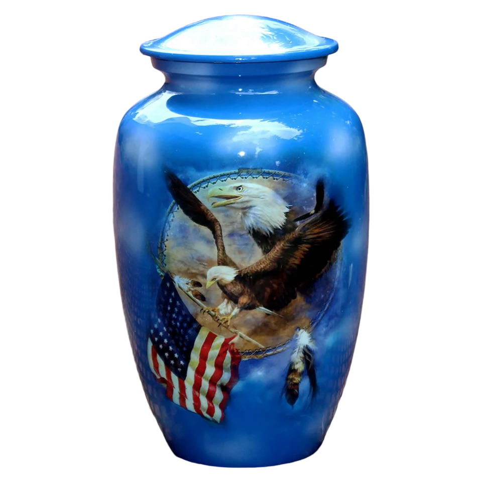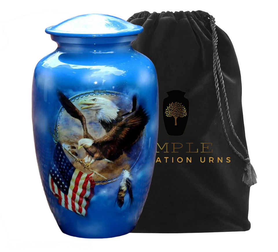 โกศเผาศพรูปนกพร้อมธงชาติ ดีไซน์รักษ์โลก ปรับแต่งได้ ความจุ 220 คิวบิกอินช์ สำหรับใส่เถ้ากระดูกมนุษย์