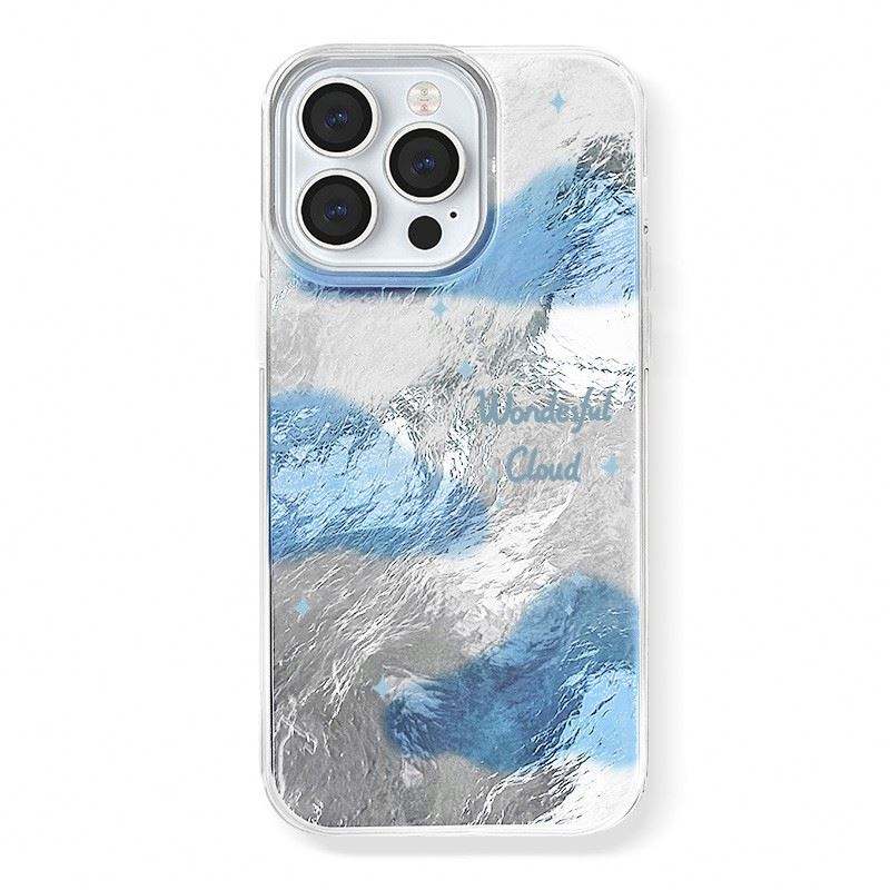 เคสโทรศัพท์ลายวนน้ำสีฟ้าลายเมฆสดใสสำหรับ iPhone 16 11 12 13 14 15 Pro Max Plus 16E เคสลายภูเขาน้ำแข็ง