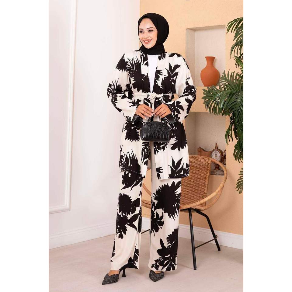 ชุดสูท2ชิ้นผ้าวิสคอสมีลายสีดำขาว
