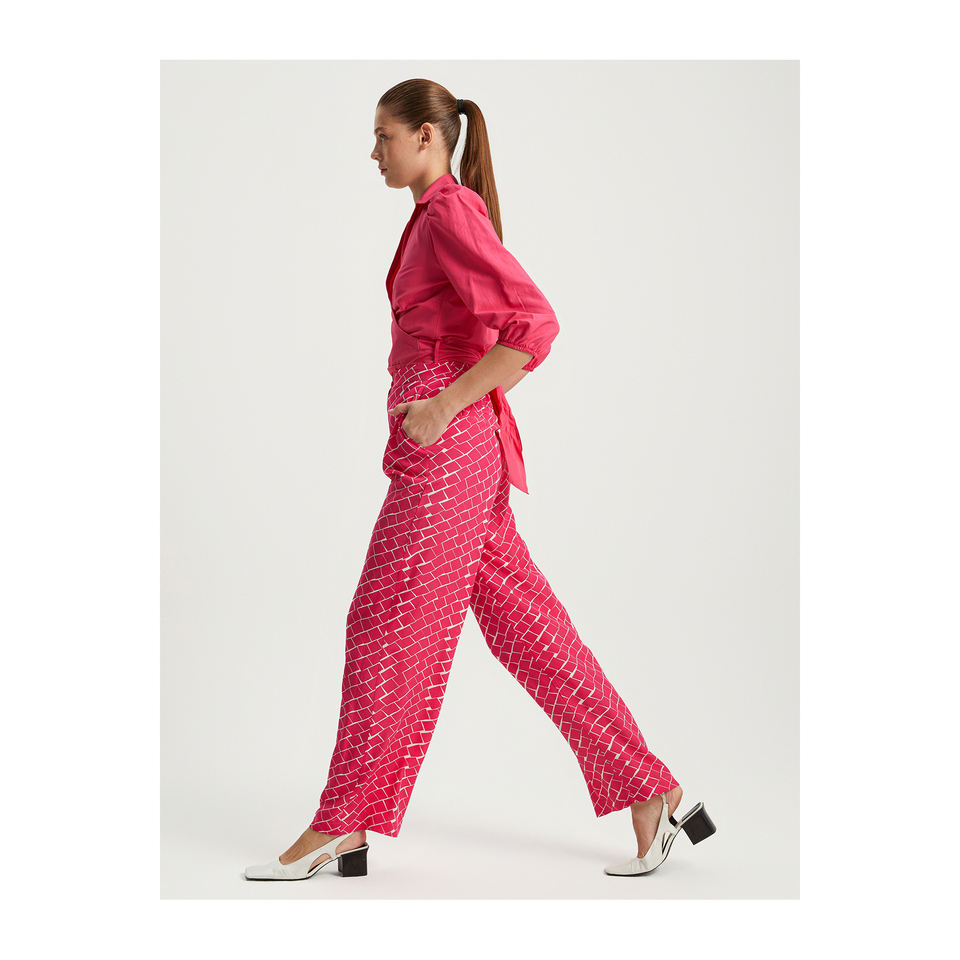 กางเกงขายาวทรงขาบานลายพิมพ์ รุ่น BGN S23P362 ผลิตจากผ้าวิสโคส สำหรับผู้หญิง