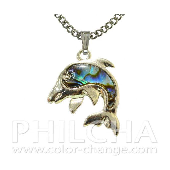 สร้อยคอรูปปลาโลมาเปลือกหอย Paua พร้อมโซ่โลหะ