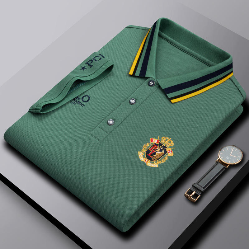เสื้อโปโลชาย แขนสั้น ผ้าถักปักลาย สำหรับฤดูร้อน ผ้าโพลีเอสเตอร์/คอตตอน ไม่เป็นขุย เหมาะสำหรับวัยรุ่นและวัยกลางคน