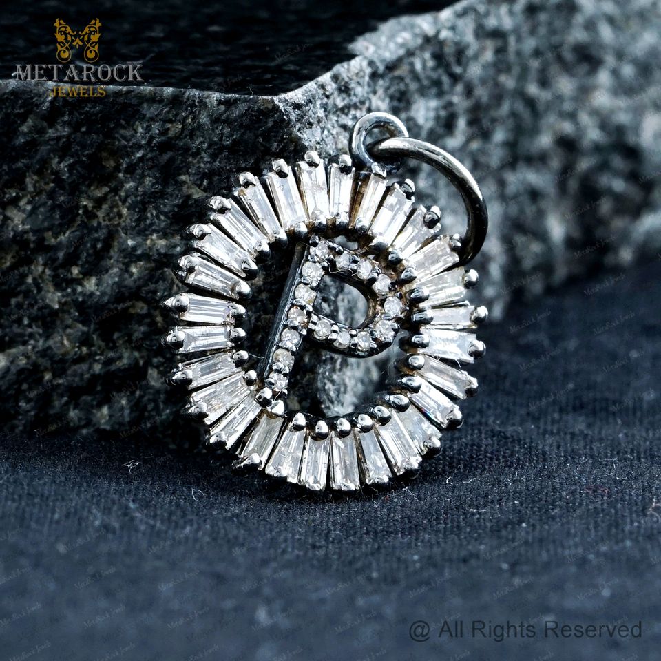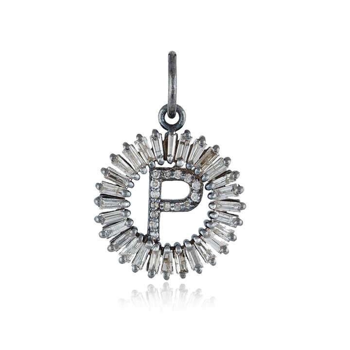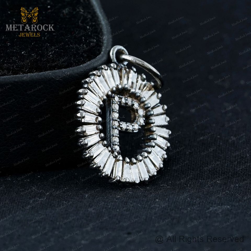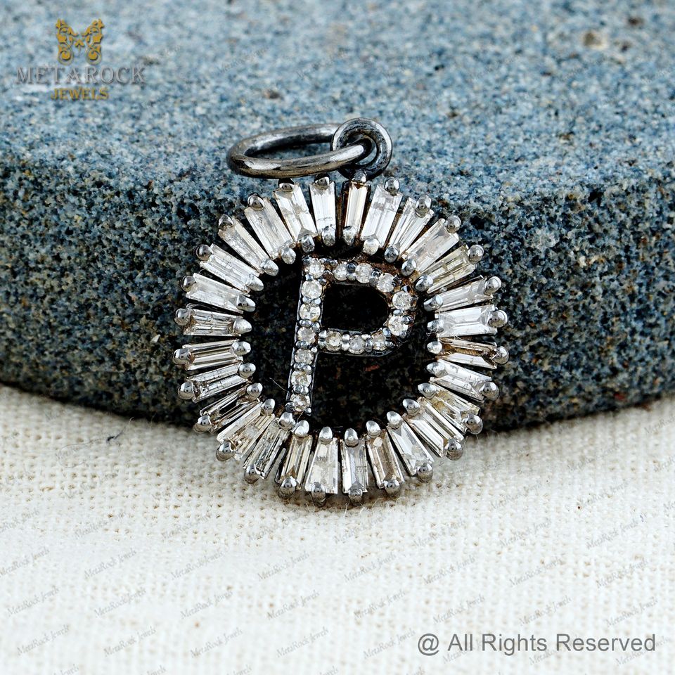 จี้เพชรเริ่มต้น P เสน่ห์ออกซิไดซ์925เงินบาแกตต์จี้ตัวอักษรเพชรเสน่ห์เครื่องประดับสำหรับทุกเพศขายส่ง
