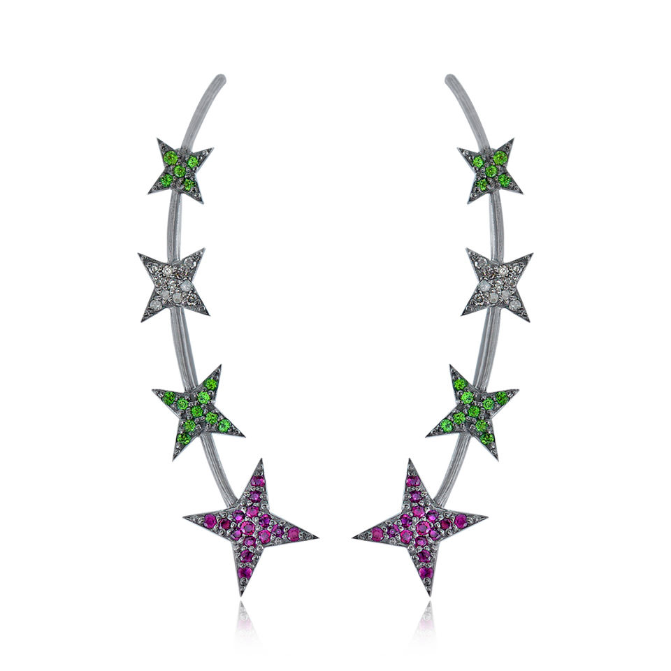 ปูเพชรทับทิมพลอยออกซิไดซ์925เงินโครเมี่ยมออกแบบ Diopside หูข้อมือเครื่องประดับของผู้หญิง