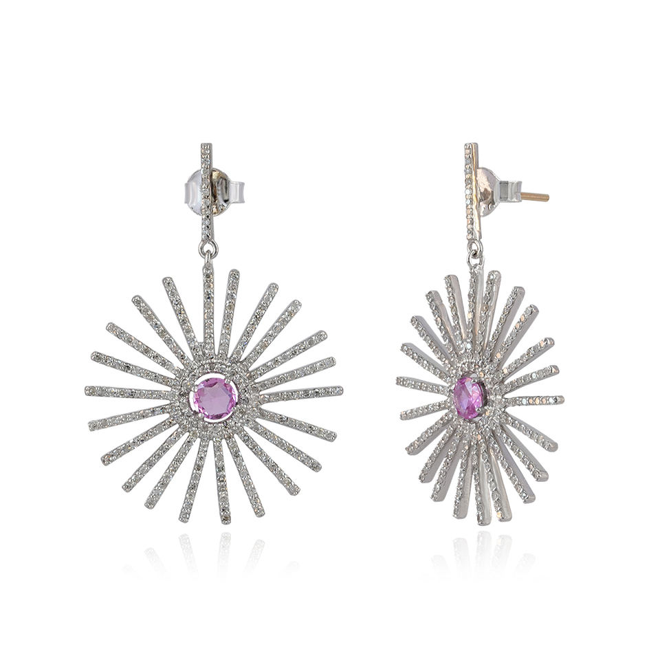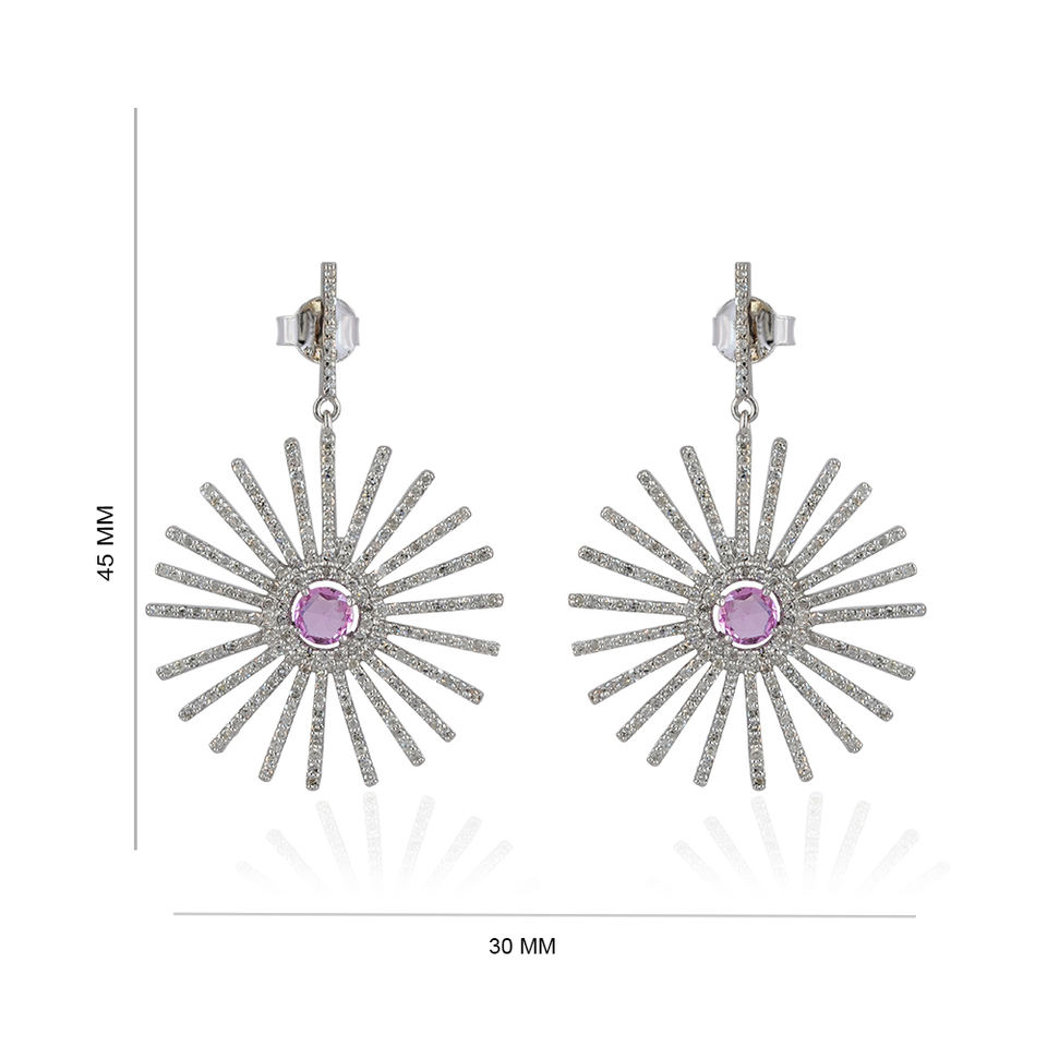 925เพชรสเตอร์ลิงเงินสีชมพูแซฟไฟร์พลอยดาวดันกลับต่างหูตุ้งติ้งขายส่ง