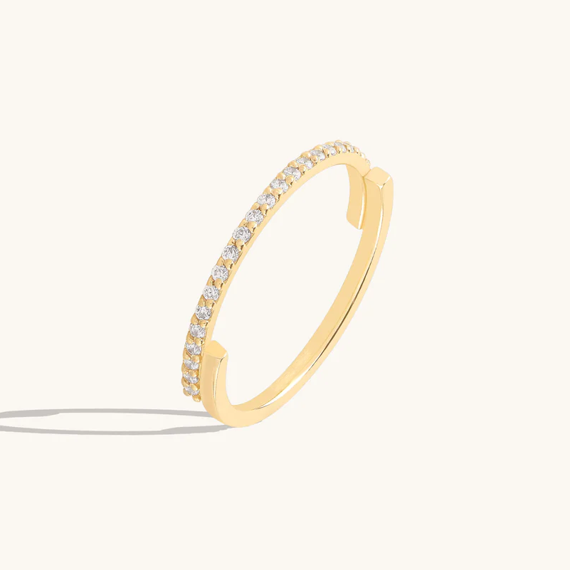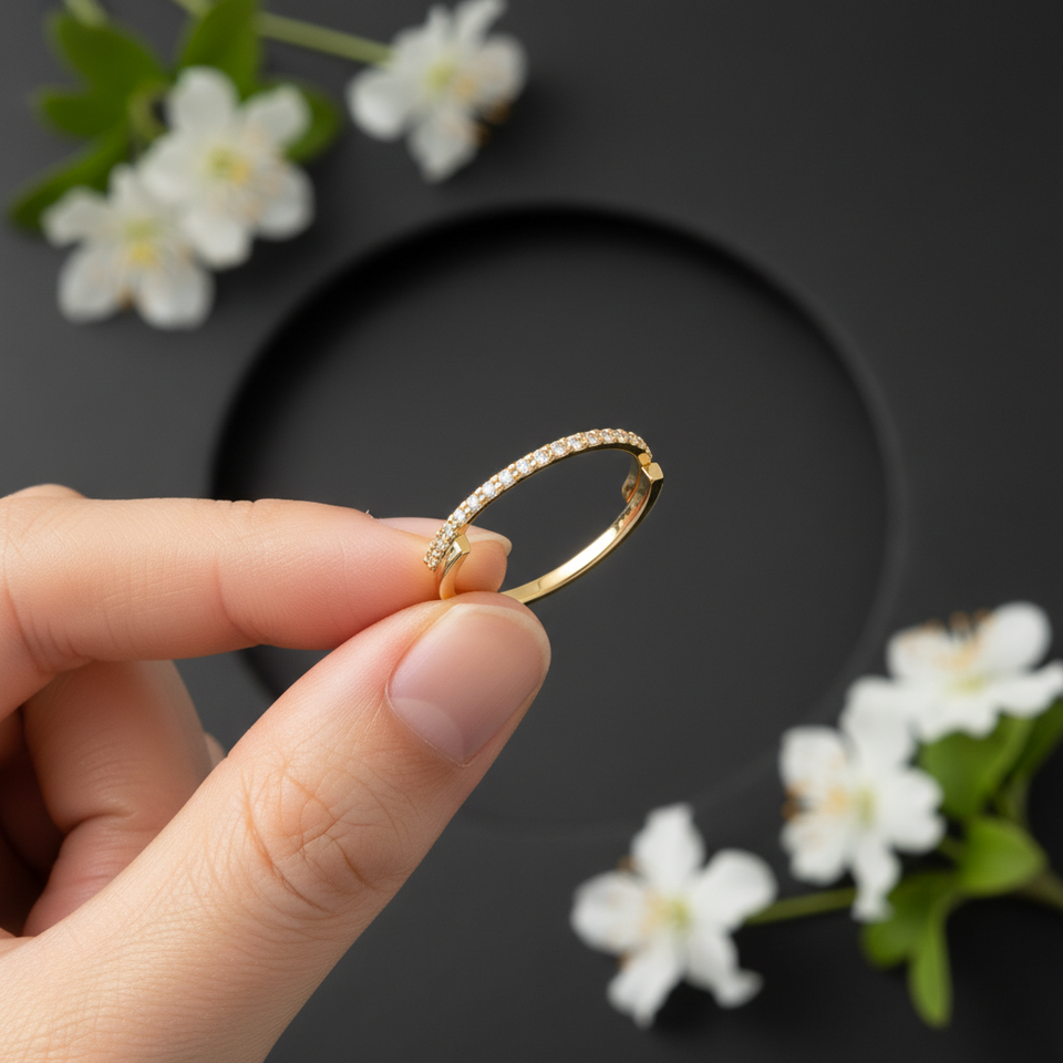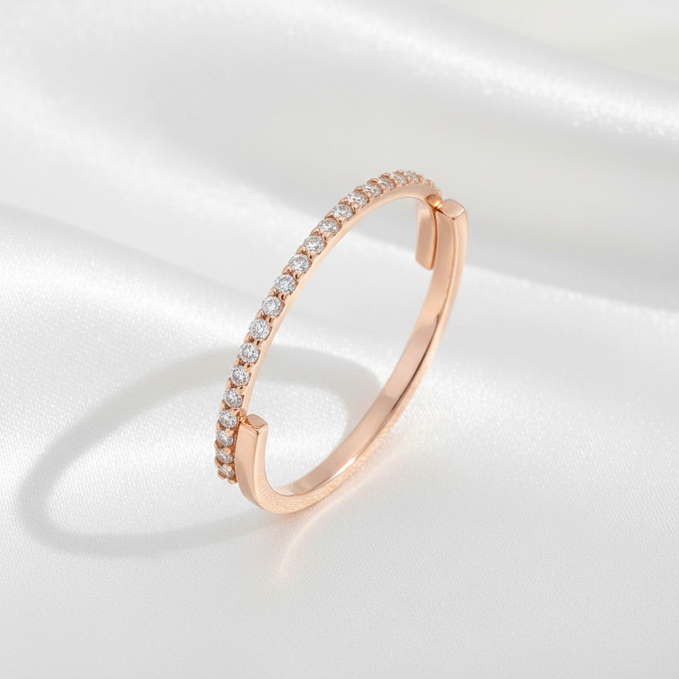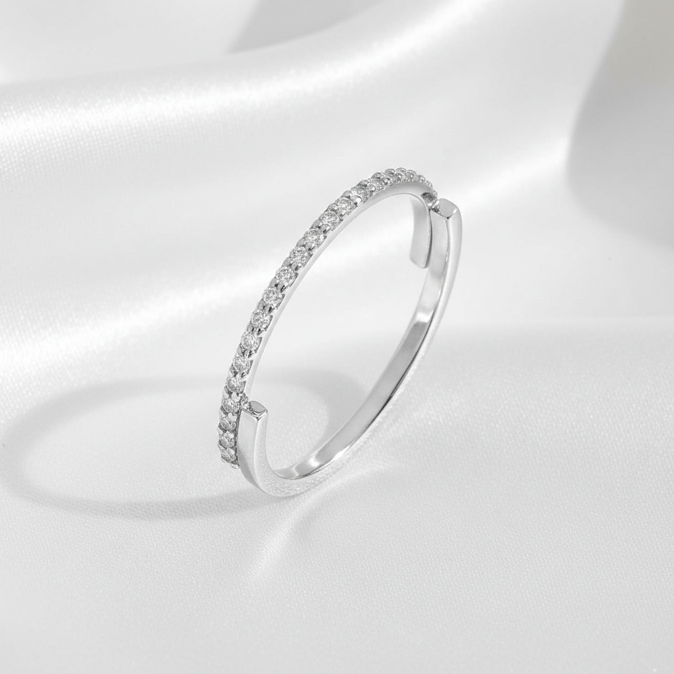 แหวนแต่งงานครึ่งวงประดับเพชรคิวบิกเซอร์โคเนียหรูหรา เงินแท้ 925 แบบซ้อนได้ สำหรับงานหมั้นและวันครบรอบ