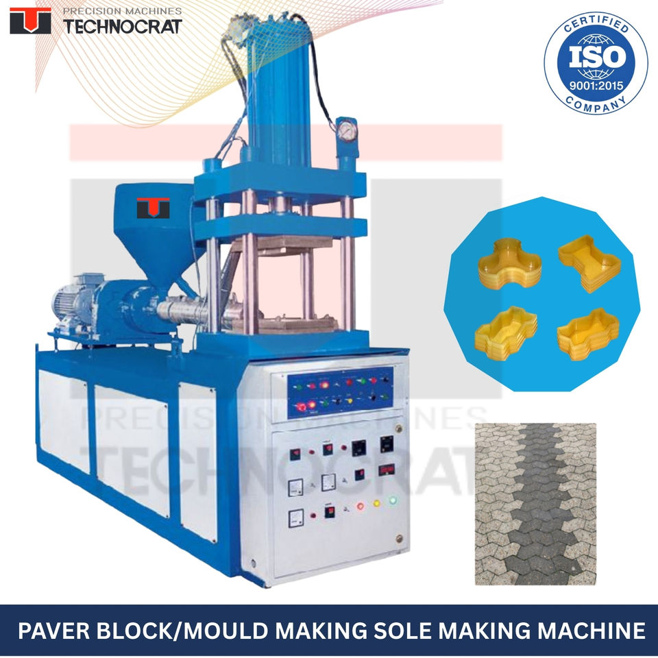 เครื่องทำบล็อกปูพื้นแบบไฮดรอลิก รุ่น PV-2 ยี่ห้อ New Technocrat Mouldings ผลิตได้ 60-220 ชิ้น/ชั่วโมง ระบบไฮดรอลิกเต็มรูปแบบ ขนาด 600x600 มม. พร้อมมอเตอร์ปั๊ม