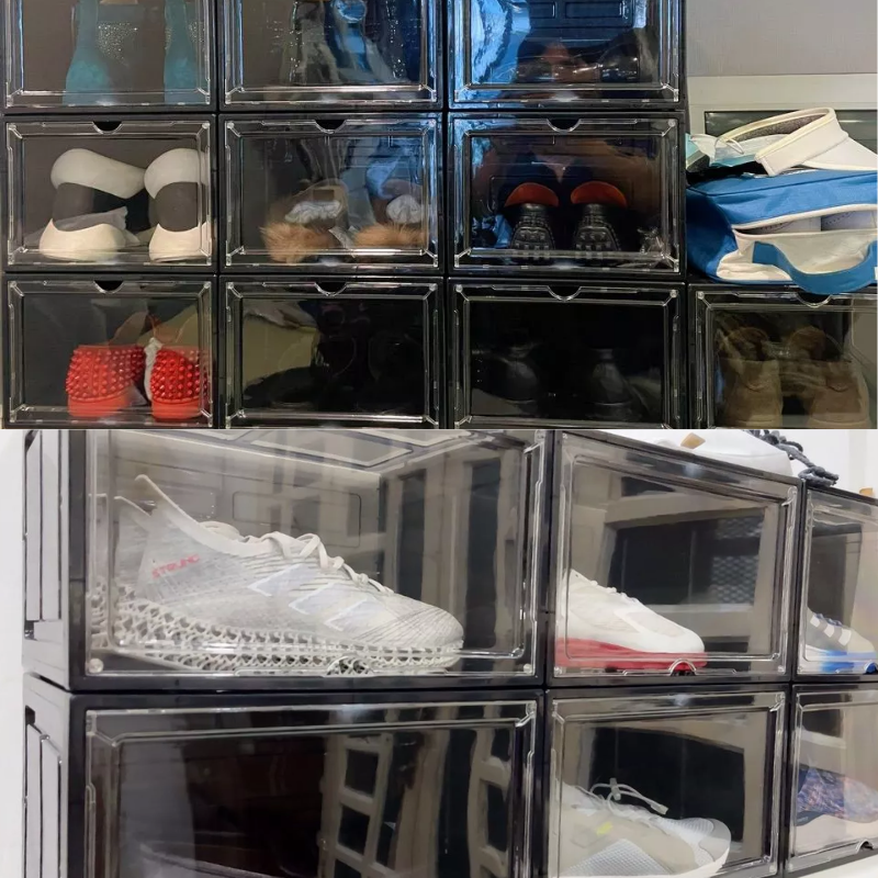 กล่องรองเท้าพลาสติก PP คุณภาพสูง ดีไซน์ยุโรป พับได้อเนกประสงค์ เป็นมิตรกับสิ่งแวดล้อม ความจุขนาดใหญ่ หลายชั้น สำหรับห้องครัว