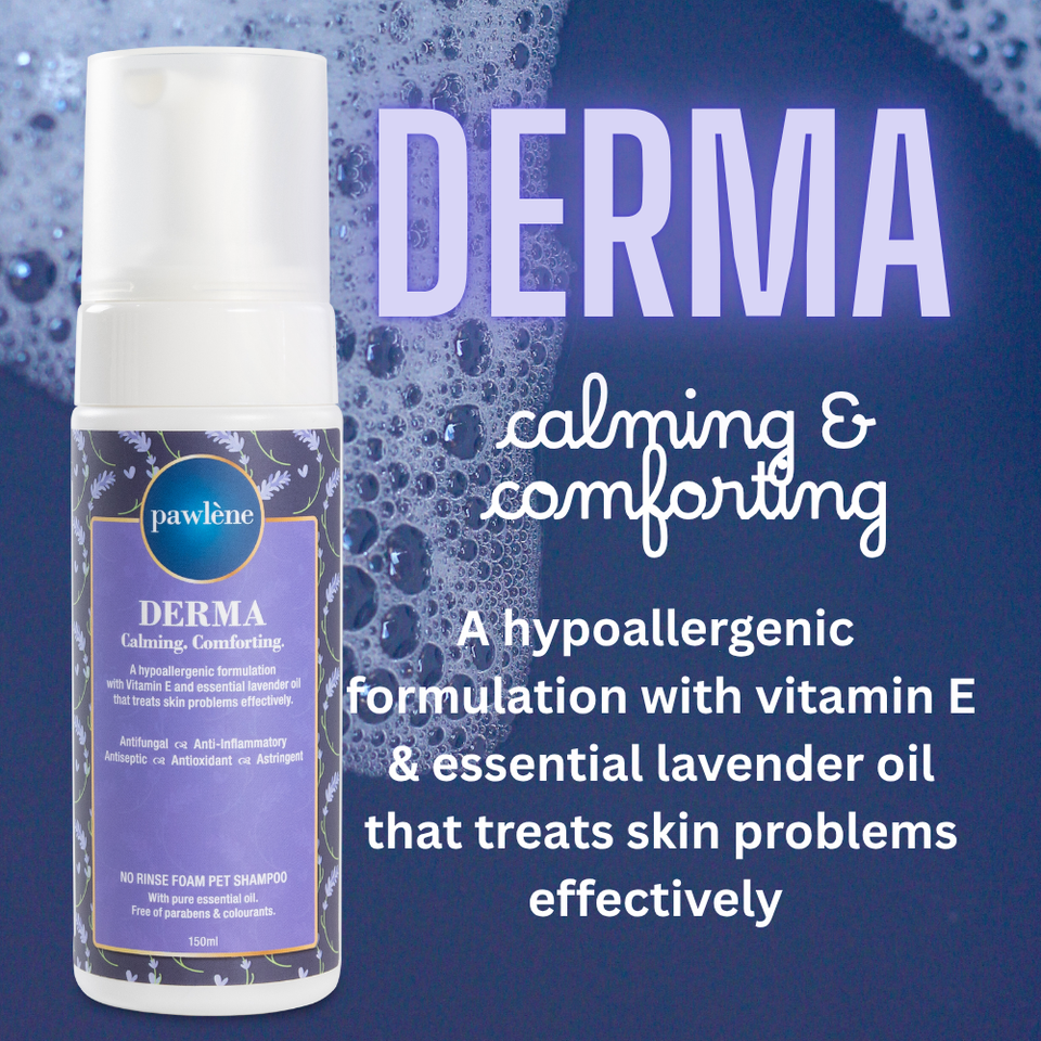 Pawlene Derma หรูหราขนาด150มล. ไม่ต้องล้างแชมพูสำหรับสัตว์เลี้ยงที่มีกลิ่นหอมแบบสวิสหรือน้ำมันหอมระเหยไม่มีพาราเบนและพลาสติกสี