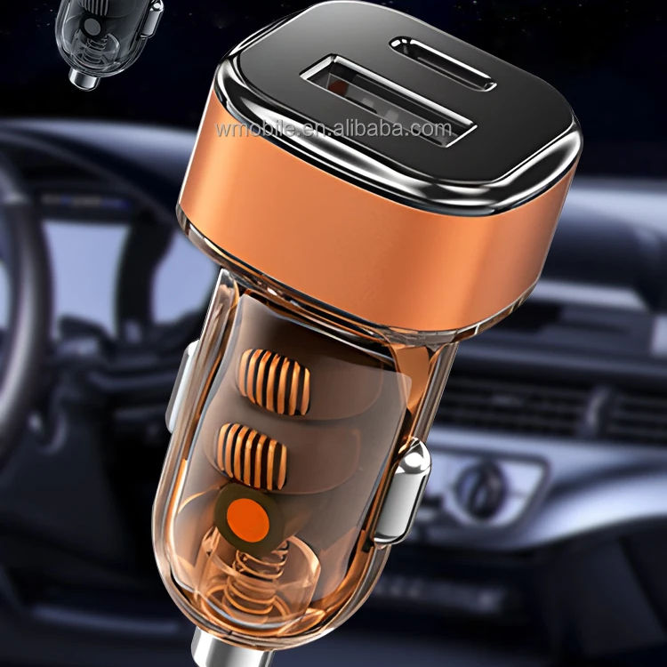 ที่ชาร์จไฟในรถแบบ USB สองช่องชาร์จไฟในรถทำจากอะลูมิเนียมโปร่งใสมองเห็นได้ชัดเจนมี Pd30w สำหรับ iPhone
