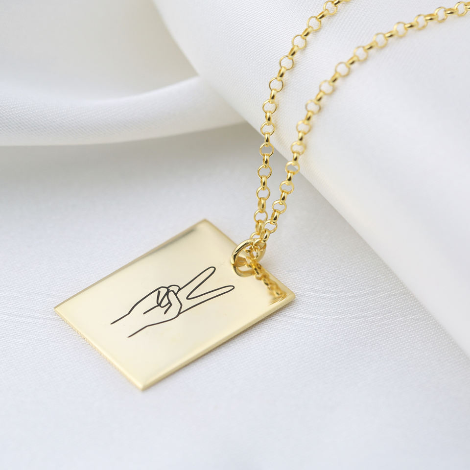สันติภาพป้ายมือท่าทางดิสก์สี่เหลี่ยมเสน่ห์จี้สร้อยคอ925เครื่องประดับเงินสเตอร์ลิง