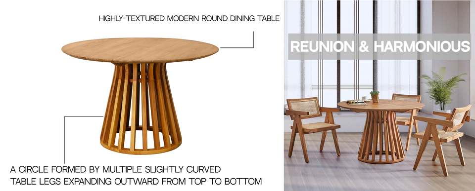 Peaceful Charming Modern Teak Wood Round Dining Table with 120 cm Diameter Durable Dining Room Furniture Set for Restaurants