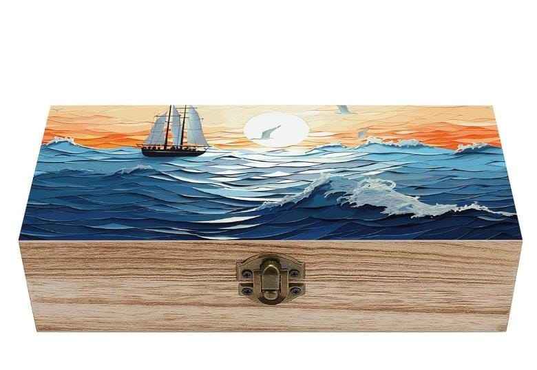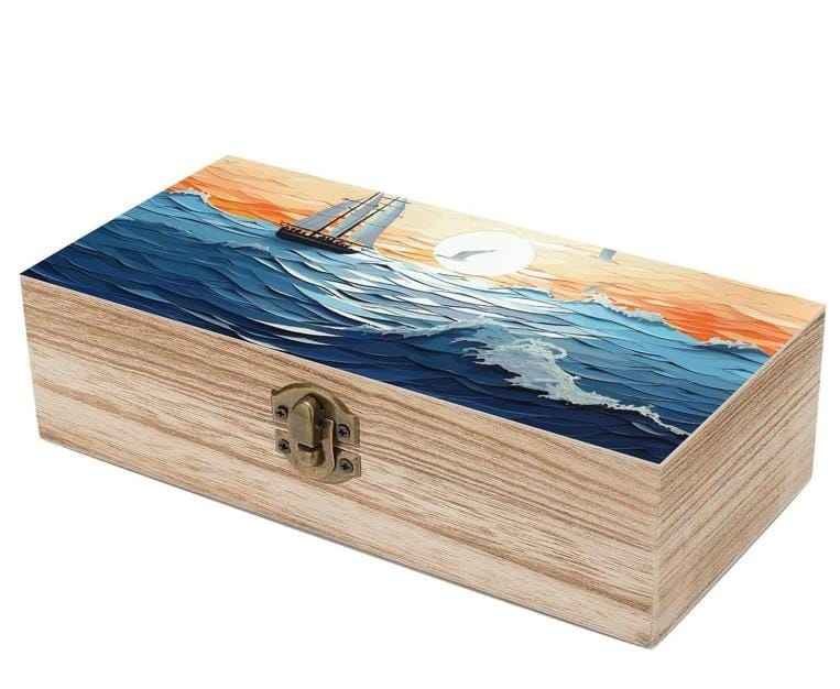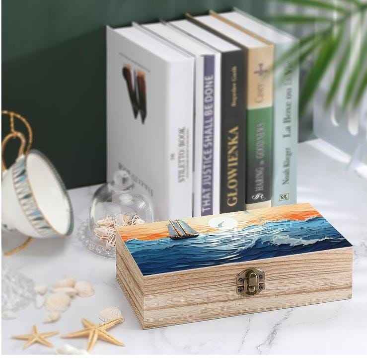 กล่องเก็บไม้เนื้อแข็งที่เงียบสงบทำจากอะคาเซียและไม้สนพร้อมกล่องงานฝีมือพิมพ์เคลือบเหมาะสำหรับใช้ในบ้าน
