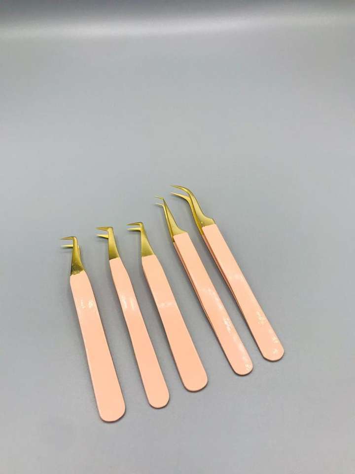 แหนบต่อขนตาสแตนเลสญี่ปุ่นสีพีชทอง90องศาแหนบขนตาเพิ่มวอลลุ่มแบบรัสเซียเคลือบแหลม