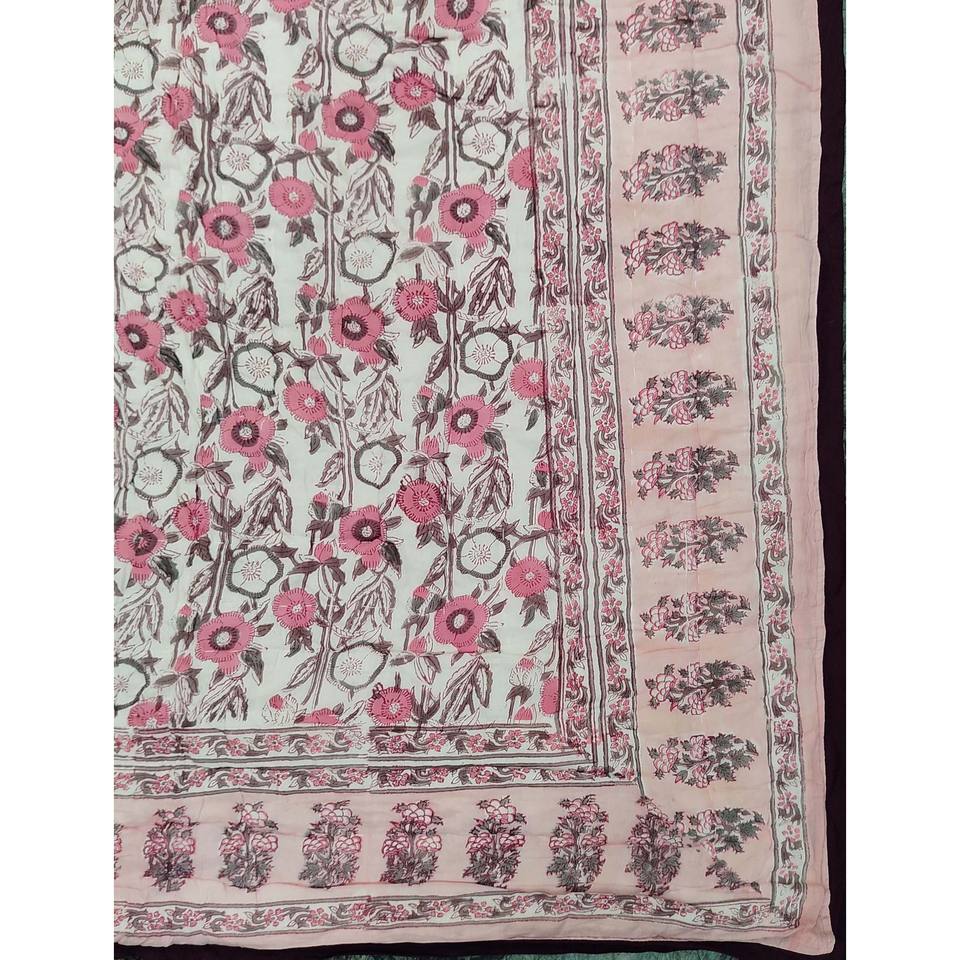 ผ้านวมสองด้านลายพิมพ์มือสไตล์วินเทจ ทำจากผ้าฝ้าย 100% เป็นมิตรกับสิ่งแวดล้อม ลายดอกไม้ สำหรับเตียงคู่ เหมาะสำหรับใช้ในบ้าน