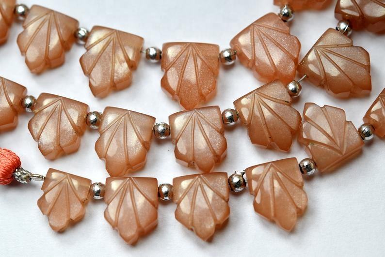 สร้อยข้อมือลูกปัดหินมูนสโตนสีพีชเครื่องประดับอัญมณีธรรมชาติแกะสลักแบบแฟนซี