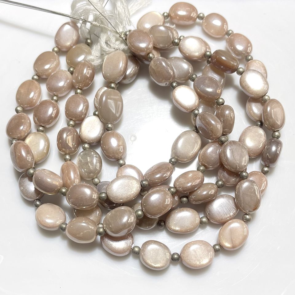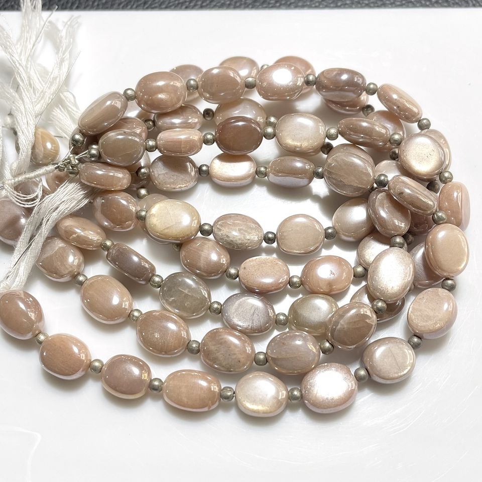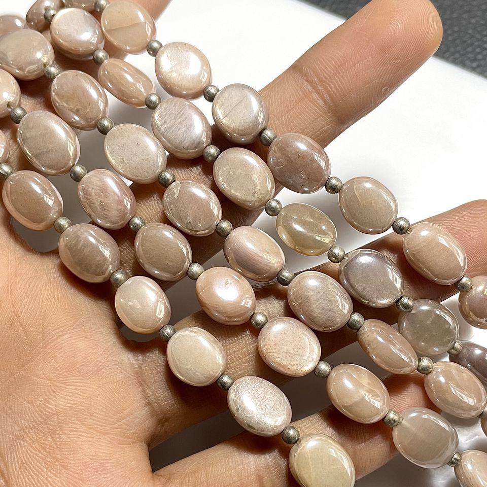 ลูกปัดอัญมณีทรงวงรีเรียบเคลือบมูนสโตนสีพีช