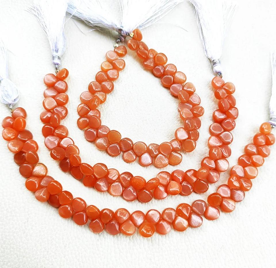 พีชมูนสโตนพลอยรูปหัวใจเรียบลูกปัด Briolette สําหรับเครื่องประดับทําขายส่งลูกปัดหินเส้น