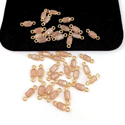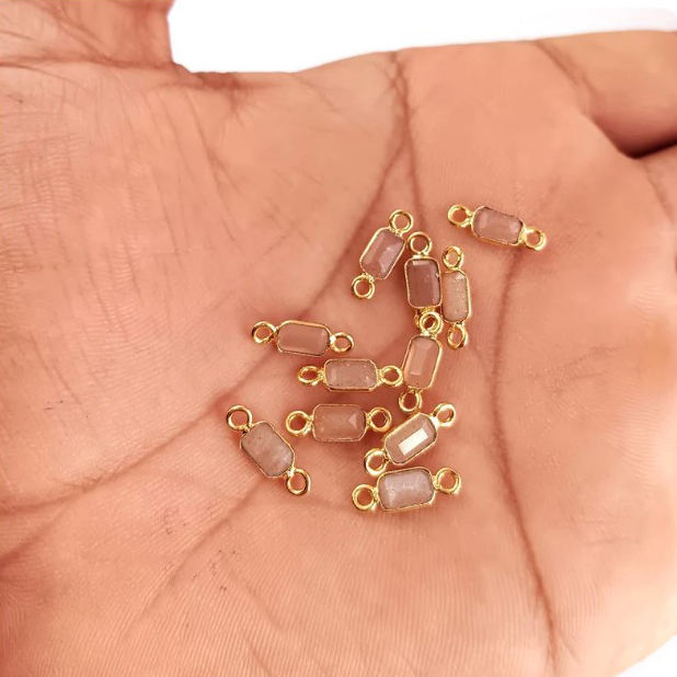 สีพีชมูนสโตนตัวเรือนเล็กทรงสี่เหลี่ยมผืนผ้าขนาด6x4มม. ตัวเชื่อมต่อชุบทองสำหรับสร้อยคอประเภทสินค้า