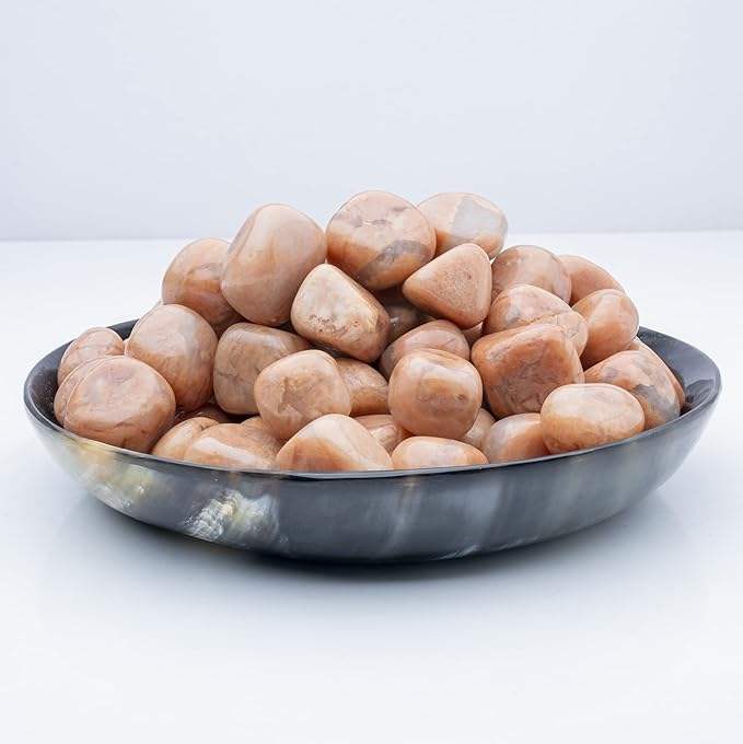 คริสตัลขัดเงามูนสโตนสีพีช-หินตกแต่งตามหลักฮวงจุ้ยและให้พลังงานอย่างสงบ