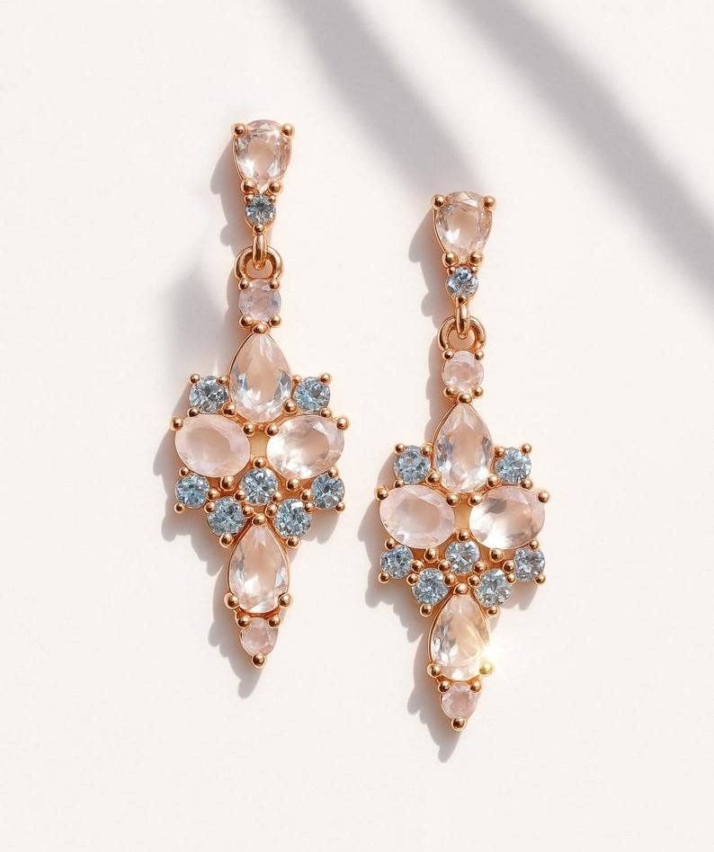 ต่างหูหรูหราพีชมอร์แกไนต์ ชุบทอง 18K เงินสเตอร์ลิง ออกแบบมาเพื่อความสง่างามแบบราชวงศ์ สีบลัชอ่อนหวาน สำหรับงานแต่งงาน งานครบรอบ และงานปาร์ตี้