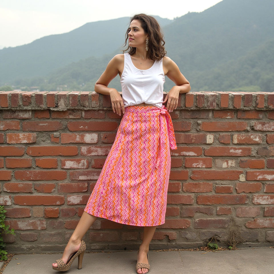 กระโปรงผ้าฝ้ายสีชมพูพีชสำหรับผู้หญิงดีไซน์เรขาคณิตระบายอากาศได้ดีเป็นมิตรกับสิ่งแวดล้อมซักด้วยมือ/ซักเครื่องได้แบบสบายๆตลอดทั้งวัน