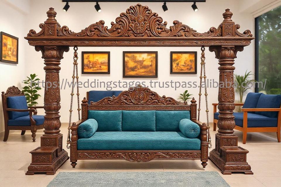 ชิงช้าไม้สักลายยูง สำหรับตกแต่งบ้าน งานฝีมือดีไซเนอร์ ชิงช้าไม้สำหรับใช้ภายในอาคาร พร้อมโซ่ทองเหลือง จูลา สำหรับห้องนั่งเล่น สไตล์อเมริกัน
