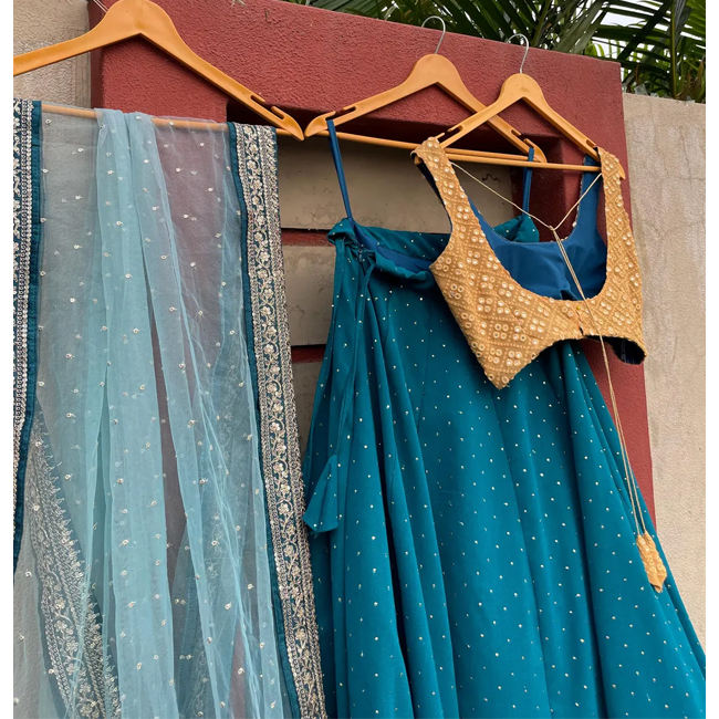 ชื่อ:สีฟ้า lehenga choli dupatta