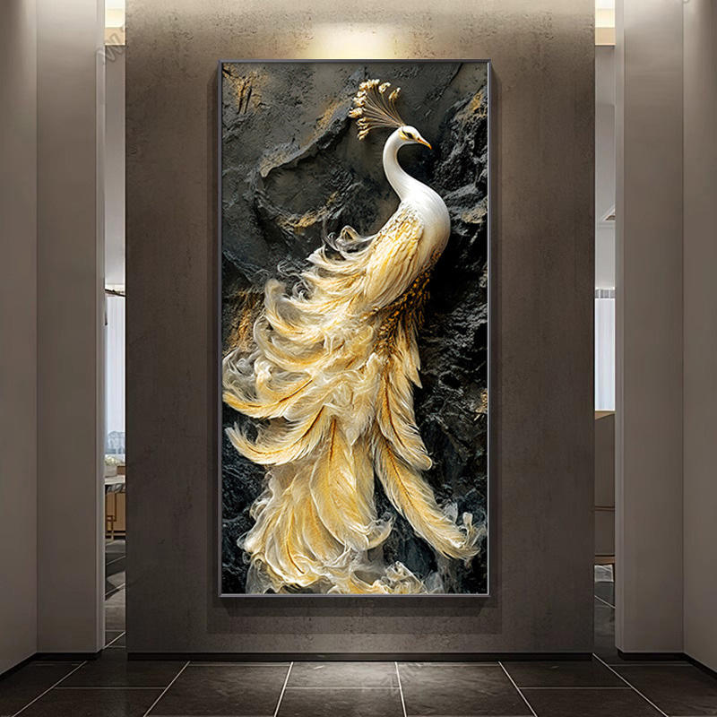 ภาพวาดอะคริลิกแฮนด์เมดตกแต่งทางเข้ารูปนกยูง ภาพนูนสามมิติระดับไฮเอนด์ สำหรับแขวนผนังทางเดิน